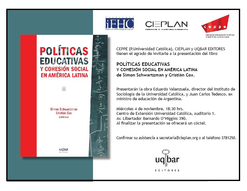 PRESENTACIÓN DEL LIBRO “POLÍTICAS EDUCATIVAS Y COHESIÓN SOCIAL EN AMÉRICA LATINA” EDITADO POR SIMÓN SCHWARTZMAN Y CRISTIÁN COX